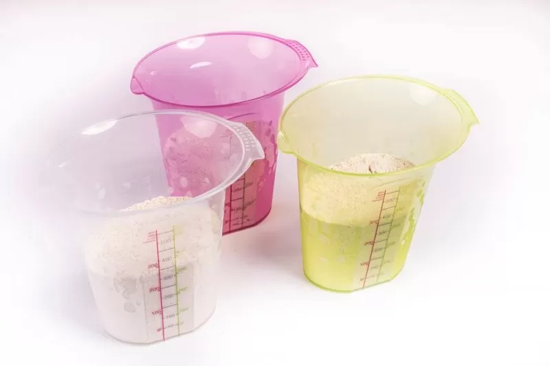 – Produsul contine gradatii inserate pentru o buna masurare a fainii, zaharului, laptelui, uleiului si nu numai;
