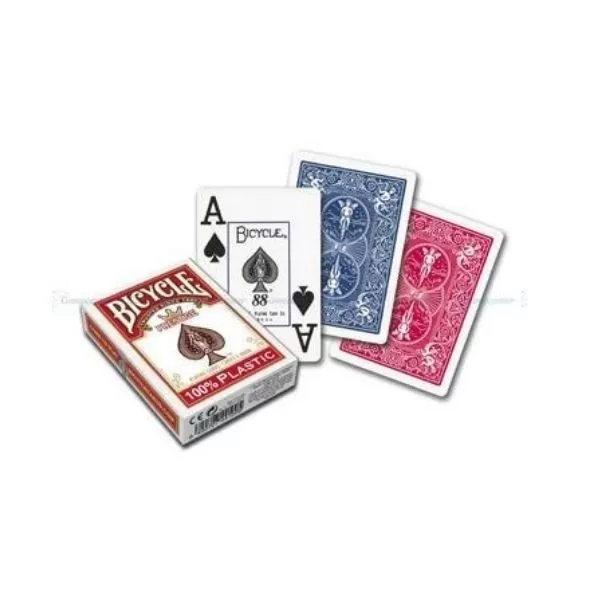 Carti de joc, din plastic – exista numeroase jocuri cu aceste carti care se pot desfasura intre copii, intre adulti, sau chiar intre copii si adulti – pot fi utile pentru dezvoltarea imaginatiei copiilor – copii pot incerca sa invete diverse trucuri si magii cu cartile