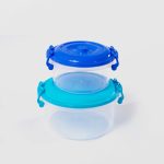 Cutie alimente cu capacitate de 2 L si 3.5 L fabricata din material plastic foarte rezistent, cu o forma rotunda si culoare transparenta, prevazuta cu capac colorat si manere care etanseaza perfect.