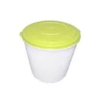 Cutie alimente cu capacitate de 2 L și 5 L fabricata din material plastic foarte rezistent, cu o forma rotunda si culoare transparenta, prevazuta cu capac colorat.