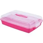 Cutie ideală pentru așezarea prăjiturilor. Este prevăzută cu capac transparent din plastic si mâner pentru a facilita transportul.