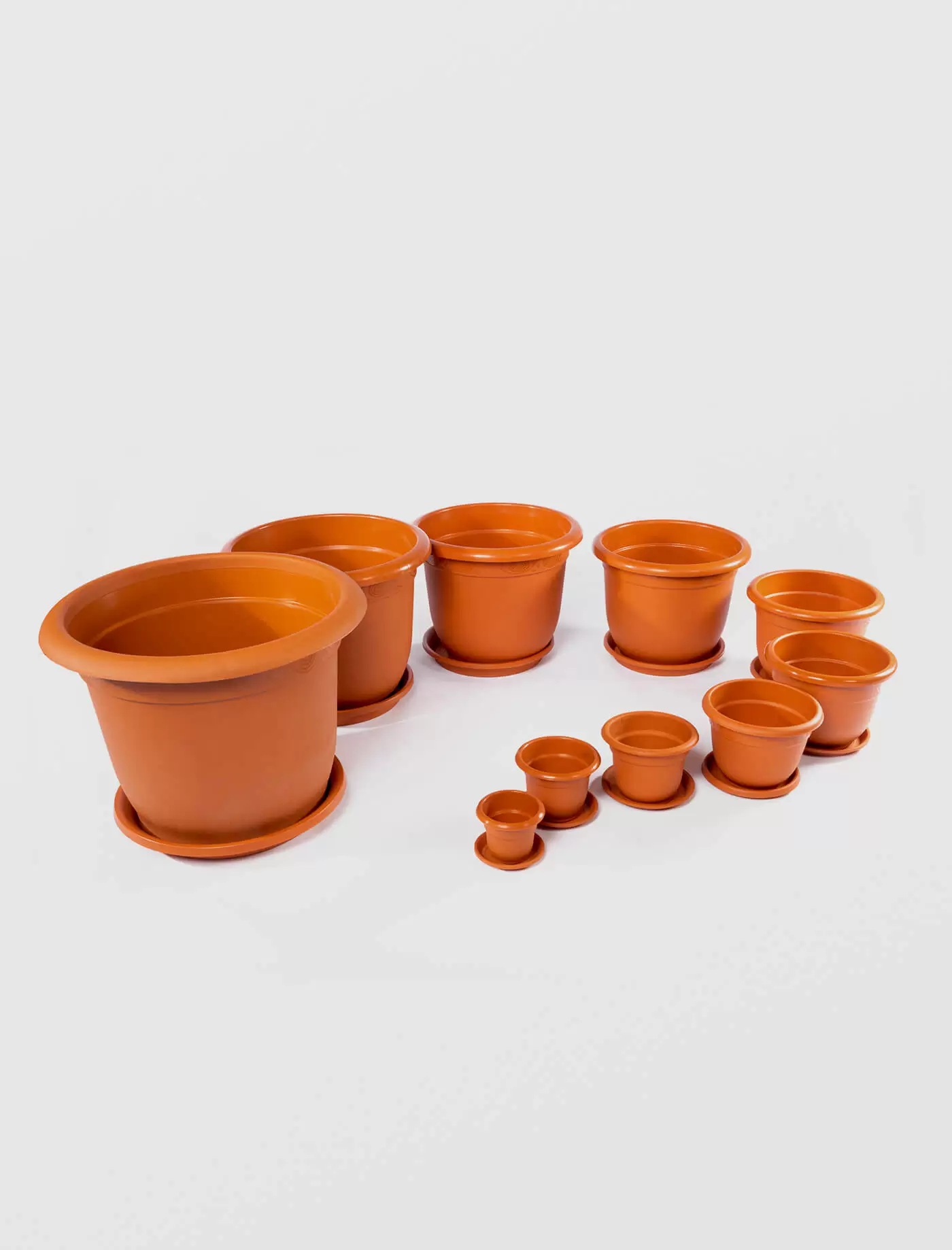 Ghiveci rotund pentru plantarea diferitor flori decorative. De asemenea, vine la pachet cu o tăviță, în care să se scurgă excesul de apă din pământul florii.