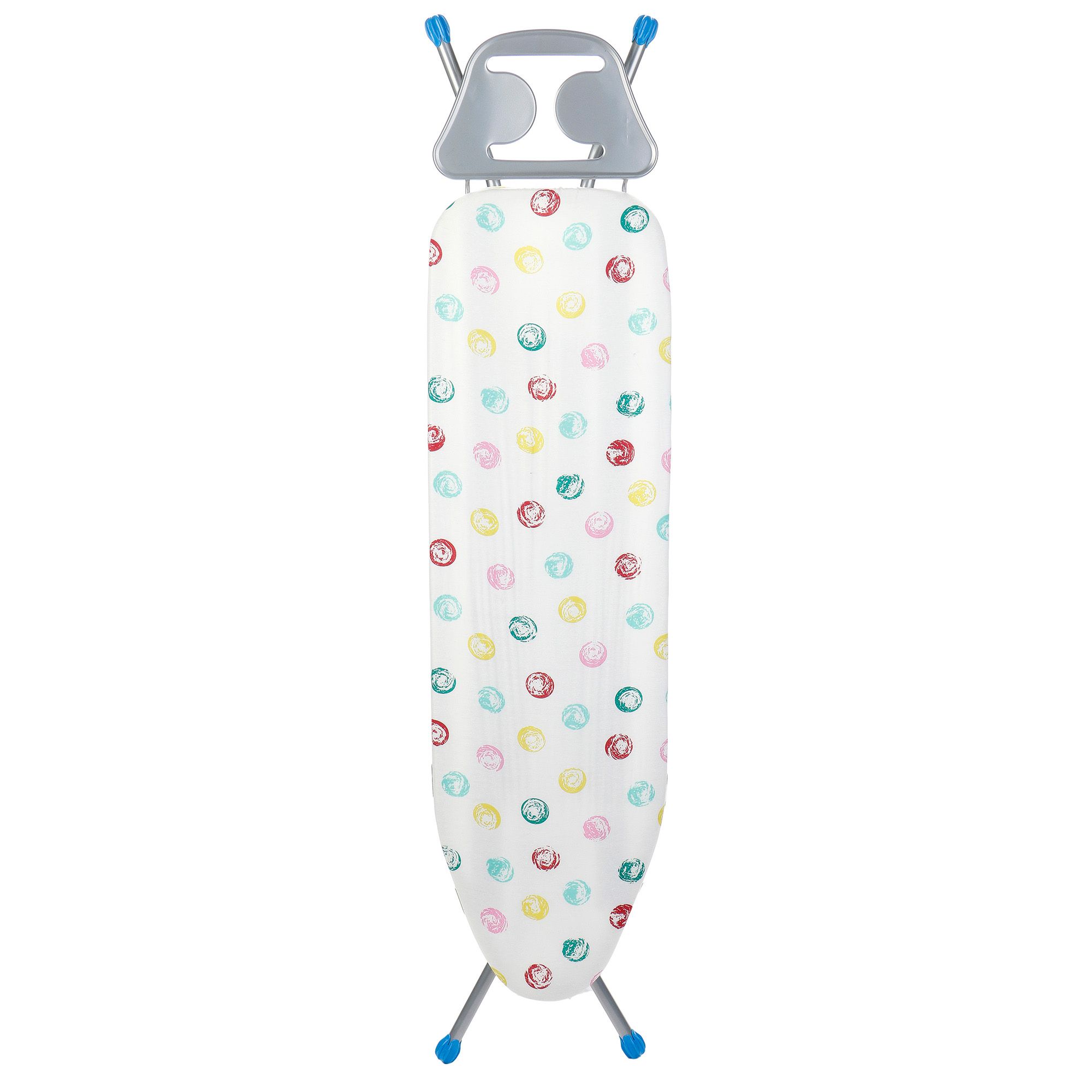 Masa de calcat nu poate lipsi din gospodaria ta, fie ca obisnuiesti sa calci in fiecare zi, fie ca folosesti fierul de calcat doar ocazional. Masa de calcat ALSU LUX are un blat destul de mare pentru a putea sa calci cu usurinta rochii voluminoase, camasi sau lenjerii de pat. Husa detasabila din amestec de bumbac si poliester este rezistenta si are un imprimeu dragut. Cadrul metalic cu profil rotund este vopsit in camp electrostatic si beneficiaza de protectie anticoroziva. Masa are o inaltime reglabila cu pozitii multiple de la 70 cm la 88 cm, pentru ca tu sa poti calca perfect orice fel de tesatura. Cu masa ALSU LUX sesiunile de calcat sunt mai comode si mai placute.