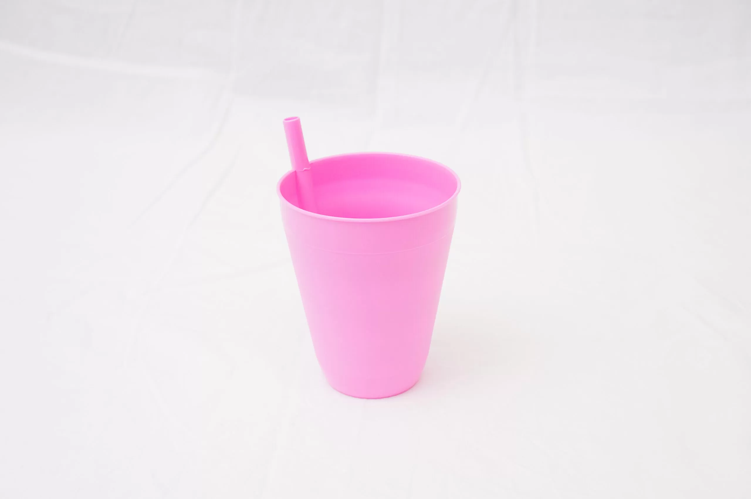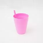 Pahar cu pai, realizate din plastic alimentar de calitate, de culoare roz.