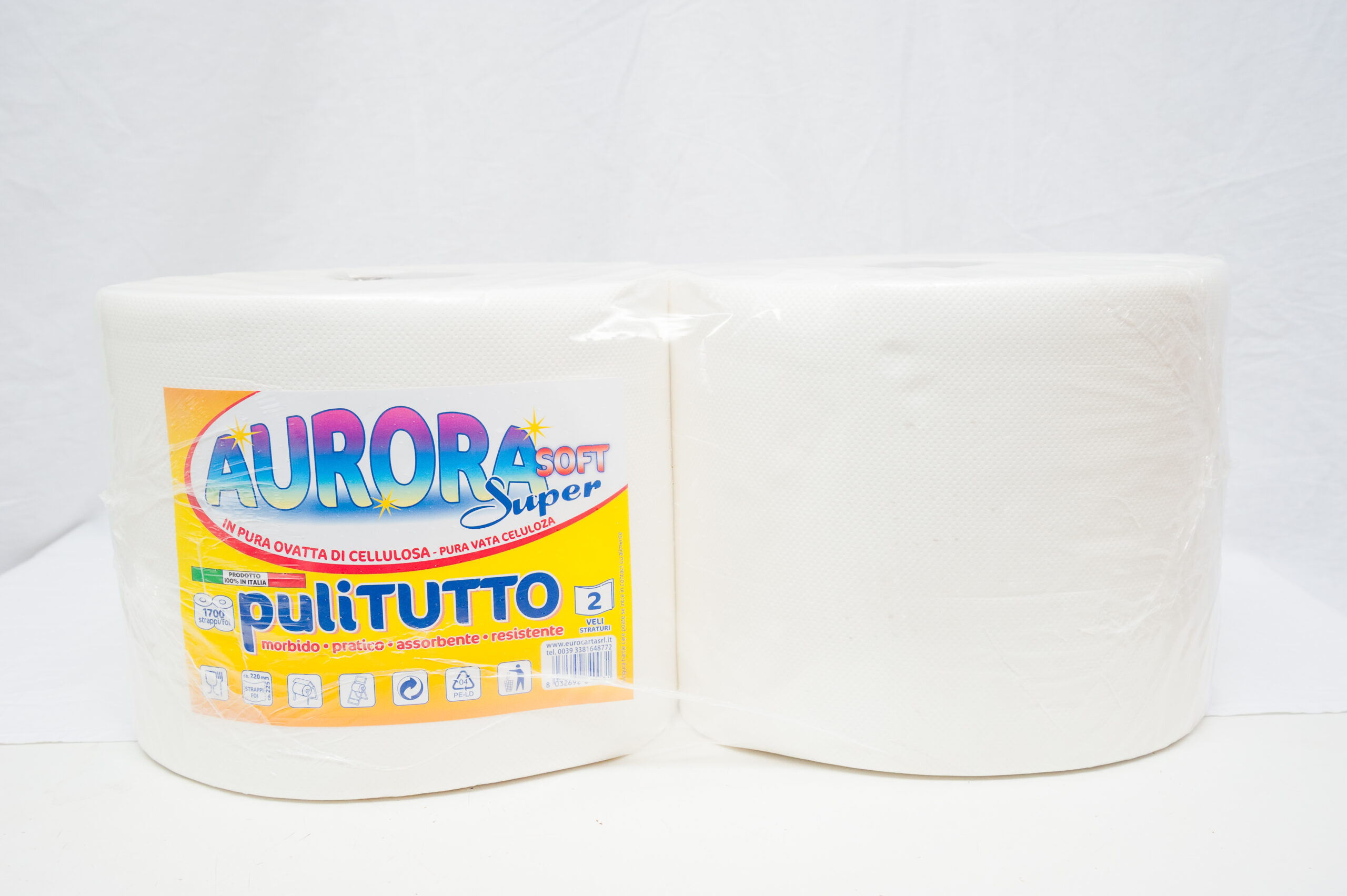 Set 2 prosoape de hartie de la Aurora Super Soft, hartie cu 2 straturi si 850 foi/rola, destinate uzului casnic, rola de bucatarie, de calitate superioara, rezistenta si absorbanta, pentru folosire indelungata.