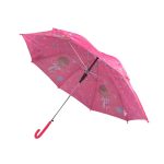 Umbrela pentru copii cu maner roz din plastic. Ideala pentru vremea ploioasa.